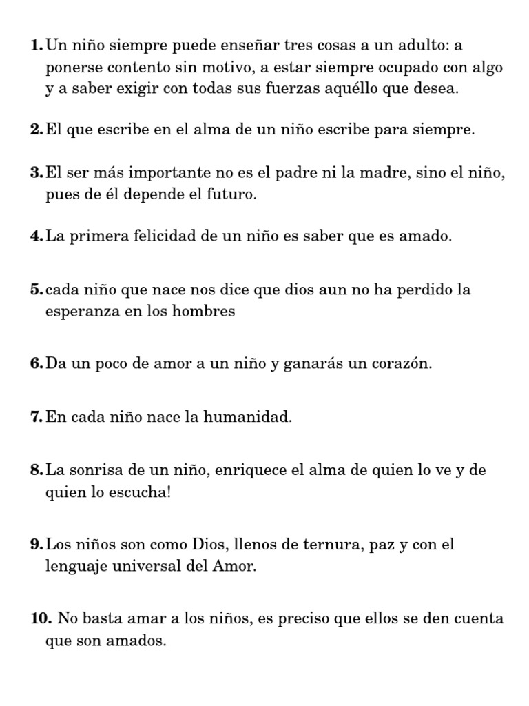 Frases Del Dia Del Nino Para Adultos Literato from www.literato.es Vive cada día como si fueras un niño ¡aprende, ríe, diviértete! Cuando crezca yo quiero ser un niño. Great quotes inspirational quotes life philosophy more than words spanish quotes tutorial wise words einstein life quotes. Saved by 6 to 7 figure accelerator. Nunca subestimes a un niño, es posible que sepa mucho más de lo que crees. Ver más ideas sobre día del niño, día del niño frases, mensaje dia del niño. Reflexiones cortas para que nunca dejes de ser niño. Mensajes bonitos para el 30 de abril.